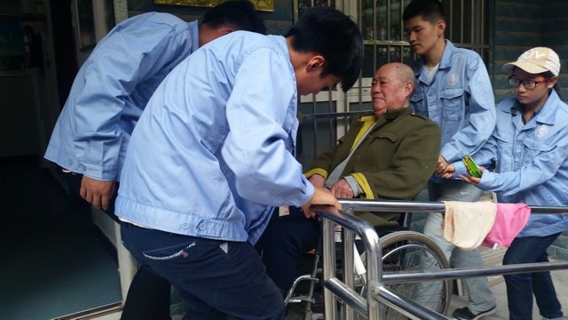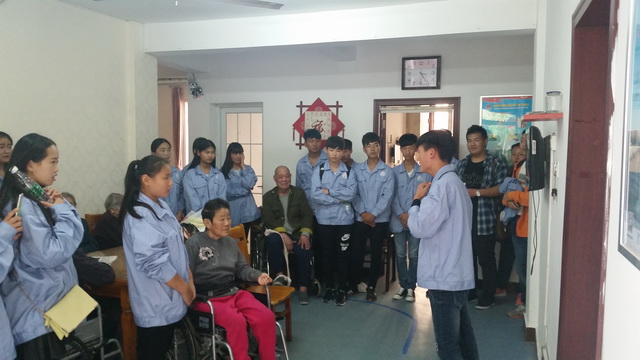 在2015九九重陽節(jié)之際,為了傳承中華民民族敬老愛老的傳統(tǒng)美德,共創(chuàng)文明城市。蚌埠職教中心(技師學(xué)院)20多名創(chuàng)城青年志愿者走進(jìn)珍珠小區(qū)敬老院,開展了“重陽節(jié),獻(xiàn)愛心”的志愿者活動(dòng)。10月22日下午14:40,我校志愿者們組成一支隊(duì)伍,邁著青春洋溢的步伐走進(jìn)了敬老院,朝氣蓬勃的他們?yōu)槔先藥ノ繂柶贰⒈硌莨?jié)目、扶老人散步、喂老人吃東西、聽老人講故事,給老人們帶去歡樂帶去溫暖,充分體現(xiàn)了志愿者們尊敬老人,關(guān)心老人的良好品德。