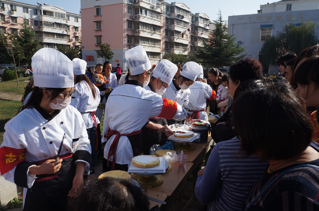在活動(dòng)中,校長陳元高向廣大市民介紹了我校的辦學(xué)情況,廣大師生向社區(qū)居民展示了蛋糕制作與裱花,為市民測量血壓、解答健康有關(guān)知識(shí)等技能。我校展臺(tái)一擺開,就被廣大社區(qū)居民圍了起來,測量血壓排起了長隊(duì),直到活動(dòng)結(jié)束,還有市民前來要求為其測量血壓;蛋糕制作展臺(tái)更是被圍了個(gè)水泄不通,有的居民還與學(xué)生一道動(dòng)手制作,活動(dòng)臨近結(jié)束,學(xué)生將制作好的蛋糕分發(fā)給現(xiàn)場的社區(qū)居民品嘗,為整個(gè)活動(dòng)增添了喜慶氣氛,大家品嘗后紛紛夸獎(jiǎng)學(xué)生技能的精湛。我校學(xué)生志愿者還向廣大社區(qū)居民散發(fā)了學(xué)校的宣傳畫冊(cè)、向市民介紹我校的教育教學(xué)情況,讓廣大市民充分了解蚌埠市的職業(yè)教育發(fā)展。(招就辦供稿)