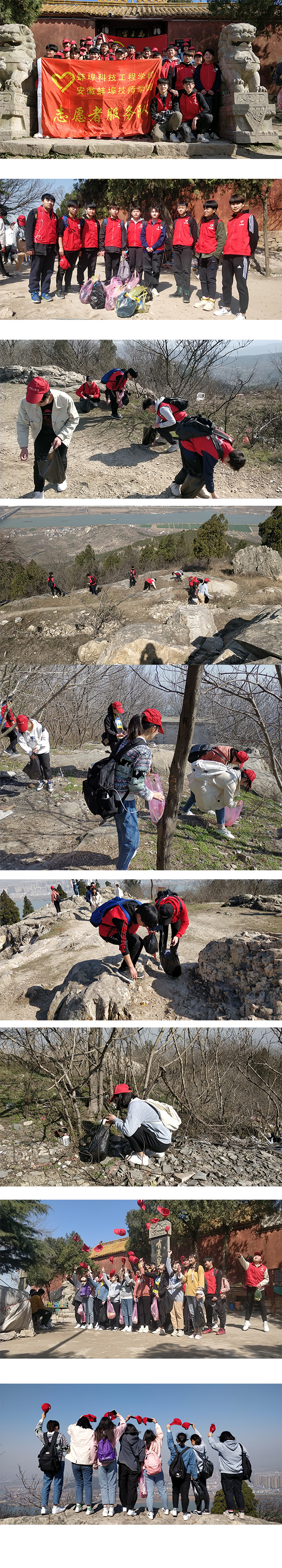 “綠水青山就是金山銀山”書記的話常?;厥幵谖覀兌?,同時,為了踐行國家“建設(shè)社美麗中國”的號召,我校團(tuán)委在3月12日植樹節(jié)這一天,舉辦了前往懷遠(yuǎn)涂山進(jìn)行志愿者撿拾垃圾活動。